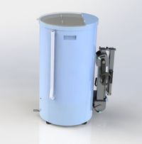 本产品涉及洗衣机,也可以说是不用电的洗衣机。内设有箱体,折叠箱盖,箱体下设用出水口,滚筒,波轮,其特点就是通过拨杆可以单独实现洗衣和脱水两个功能。使用时,展开脚踏板和支架,打开顶盖向箱体放入衣物,注入适量水,加洗衣粉,然后坐在箱盖上手握把手,两只脚蹬脚踏板,通过传动轴,带轮,锥齿轮带动波轮旋转洗衣服;脱水时,用脚向上拨动拨杆,放下排水管,重复上述操作,即可甩干衣物。解决了限制使用电器的场所,或者没有电,自来水地区的洗衣问题,在洗衣的同时也可以锻炼身体,利用健身运动能量于家务劳动,实现节能减排。随着健身运动家庭化的普及,充分实现利用健身运动所产生的能量于家务劳动,是一个健康的发展趋势。此产品具有结构简单,成本低廉,使用方便,占地空间小,广泛适用于不同年龄段的家庭成员。