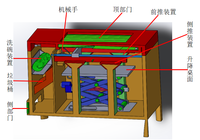 在家庭饭后清洗餐具麻烦,清洗剂对人体有害,于是试图解决这一问题,设计了一种全自动洗碗餐桌,以满足家庭每日必须的饭后的碗盘清洁及烘干。