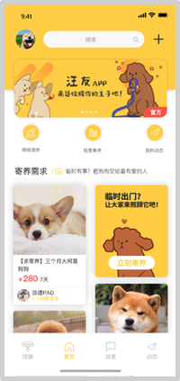 针对这一现象我们的APP指向狗狗的短期寄养,寄养功能中狗狗的安全性和被寄养方与狗狗的交互方式是十分关键的因素,满足这两点才能让用户舒心、放心,从而提高APP的使用率。养犬用户可通过本款app的帮助轻松为您的爱犬找到一个令人满意的寄养场所,使您的出差、旅行不再烦恼