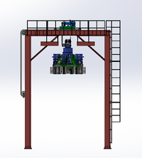 本设备是专门用于钢锭模内孔扫磨的装置。主要适用于132t~281t钢锭模内孔氧化皮及钢渣的清理,清理内孔范围为φ2400mm~φ3480mm,通过PLC程序控制可实现钢刷随钢锭模内孔的拔模斜度随形扫磨。
