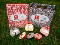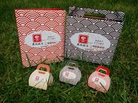 即墨麻片是200年前即墨茶食店“馥郁斋”的传统产品之一。麻片呈浅黄色,厚度1.5毫米,具有香、脆、甜等特点,在全省享有盛誉。由于即墨区海域面积广阔,所以本包装采用水纹来进行装饰。口味分黑芝麻、白芝麻、综合口味,共三种。黑芝麻口味包装采用深咖色与白色表示,对比强烈,调动胃口。白芝麻口味采用橙色、米色与白色组成,色彩娇嫩,刺激食欲。综合口味采用红色与白色,红色是大众喜爱之色,节日礼品必备色彩,颇有喜庆之意,十分接地气。