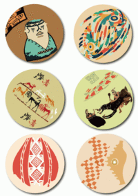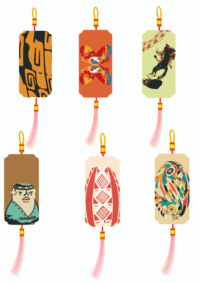 采用传统的古陶瓷为基础,将古代各式各样的陶瓷的形状和上面的图形进行改编和色彩改编,用色彩重构的手法重新编排。