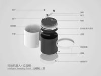 具体流程如下:扫地机器人完成清洁任务,靠信号自动回到垃圾桶附近。→ 当扫地机器人距接送点10cm时停下,并触发桶盖旋转而下。→ 当桶盖与地面成一定角度时,扫地机器人前进、与桶盖契合。→ 契合后桶盖启动电磁铁吸紧扫地机器人,带着它一并回到桶盖上。→退出垃圾桶的流程与之互逆(具体流程见随作品一同递交的动画)。