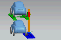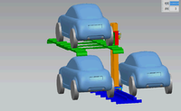该设计在小区停车位的原有位置之上,搭建一个升降停车平台。该平台为单立柱承重,更节约空间;采用液压升降装置,这种设计的优点是结构简单,易于安装,燥音小,可以手动升降,也可使用液压泵驱动;升降机构有防坠装置,车辆停好后用于稳定平台,防止下坠;停车平台宽度可调,可应用于宽度不同的车辆;在大规模量产后可以实现模块化,直接将各模块搬运到安装地进行简单的拼接即可。