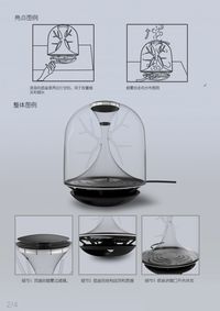 设计原因,在家庭和某些场所,在抽烟的时候,有人没有注意,经常会让附近的人洗二手烟,吸烟有害健康,但由于没有明确显示,大部分都没有放在心上,二手烟的吸入对身体造成的危害甚至要比吸烟者的危害更大。属于的心入世全球重大死亡原因之一,孩子的成长就像萌芽一样,需要一个健康舒适的环境。吸烟有害健康虽然印刷在无数烟盒上的标语,但却无法改变人们对他对香烟的依赖,因此,我们可以用一种更加直观的方式让吸烟者意识到香烟的摄入会造成什么样的后果。我们这款产品主要是用在家庭,在家中,吸烟者一般都是父亲,极少数为母亲。他们抽烟的方式一般都是在家的沙发或者其他地方,一边看电视或者报纸,家庭中放在桌上的小物件就可以起到装点作用,收集器的使用方式就是。可以采取放在桌上平放。那你应该来源于树木和人体的肺部。设计理念,将球体分成两半,做出肺的形状,内部的血管做出管状,用来乘机油烟,达到产品的警示效果,上半部分有绿化,过滤纸是可以拆开盒打开的,到达吸收烟雾,改善环境下部分是风扇用来吸收烟
