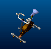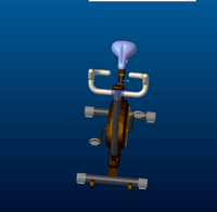 随着时代的进步,科技的发展,人们的生活方式也发生了变化,越来越多的智能设备层出不穷,动感单车逐渐出现在了我们的生活中,本作品是基于现有动感单车的基础下,结合节约能源、降低能源消耗、减少污染物排放的思想。对其做一系列改变,让你在体验动感单车的前提下,感受不一样的体验与全新的感觉!该作品与传统的动感单车有着很大的区别,该动感单车包括:主架、副架、手握架、连接架、支撑腿、转轮、座椅和脚踏,所述主架与副架固定连接,副架转动连接于转轮两侧,座椅固定连接于转轮上端,支撑腿固定连接于主架的前后两端,脚踏移动连接于副架,连接架通过固定连接的方式与主架连接,手握架与连接架固定连接。该造型提供了一种可以锻炼腿部肌肉的同时也锻炼了腹部肌肉,另外在车身上也会采用当下年轻人所喜欢的色彩与图案,博人眼球的同时也能让锻炼的人达到身心愉悦的效果。该产品的另外一大特点是安转了手摇式发电机,在锻炼身体挥洒汗水的时候,也能将产生的能量以一种方式储存起来,用在其他方面的消耗。