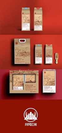 红米在我国有着悠久的历史,红军在井冈山坚持斗争时期主食的“红米饭,南瓜汤”指的就是这种米。红米由山泉水灌溉生长而来,生长期较长,米质良好。井冈山被誉为“中国革命的摇篮”,具有极好的生态环境,适宜红米生长。此包装将井冈山红色文化与红米文化相结合并以插画的形式表现出来,人们在买到井冈红米的同时,可通过此插画联想到抗日时期的红军辛勤开垦土地种植红米的景象。增强人们对红色文化的印象与了解,提高产品附加价值,同时促进井冈山红色文化的保护与宣传。