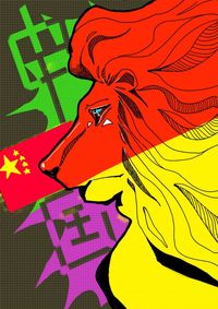 经过改革开放等一系列政策,中国如同一只觉醒的雄狮,各方面都有在发展,红黄相间的颜色表现爱国精神,该插画意在表现中国正朝气蓬勃,披星戴月,朝着未来不停前进。