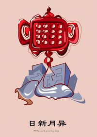 第三张日新月异,由中国结,高铁,原子弹,高楼大厦,跑道构成。中国结呈方形,给人一种循规蹈矩的感觉,也代表未来将会迈入科技时代,中国也会日益强大。