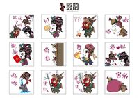 “影韵”民族皮影品牌文创设计,标志为多媒体动态方式呈现标志效果由四个静帧图形连续播放得到,效果可以在多媒体平台展示。将表情包与皮影结合进行创作,以互联网形式进行传播。衍生产品形式包阔互动游戏、日用品、文具、服装饰品等。