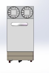 机器总体为三层框架结构,底部为两层结构由下至上:第一层装有带领整个机器实现移动的驱动电机和传动机构,第二层装有机器的控制系统和接线板、电源装置和开关等,第三层即为机器收集和储存结构。机器动力系统由电机和电源配合提供,电源提供动力给42伺服步进电机,大容量储存电池为机器持续工作的实现提供保障,且当电量低于设置值后可以自动回到充电桩进行充电;收集系统由吸气式结构实现,通过机器顶部的电机和风扇产生吸力,在机器运行过程中将散落在地上的乒乓球利用吸力吸入传输管道再落入收集装置中,储球箱为抽屉式结构,拉动把手将箱体取,即可拿出收集到的乒乓球。机器顶部的电机和风机前会装有灰尘过滤装置,即灰尘滤芯袋,保证了无刷电机不受影响。而机器顶部以及底盘第二结构配有的传感器能实现室内空间地图的构建,在此基础上实现空间路径规划,确保能全覆盖不重复的绕场清理乒乓球。关于超声波传感器检测到前方有障碍物后数据实时反馈回控制系统,根据算法实现遇障碍物转向九十度继续进行收集工作。整台机器在42伺服步进电机的带动下能实现精确、快速地覆盖绕场运动,清理地面上的乒乓球。