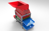 板栗自动脱蓬机驱动电机采用单相电源供电,耗电低、体积小、重量轻,在机器下方设有万向轮,便于使用和移动。可供家庭使用、承包商使用、板栗专业种植户使用。另装配可调节弹簧刀片组,解决了南北地区板栗大小不同,过大易打碎,过小未脱蓬的问题。主辊增加四氟软管, 使脱蓬后的果实表皮光滑无伤痕,果仁无裂痕,本机的风选功能使果实与果皮分离无杂质,果实洁净。只需对本机做少许更换与调整。便可用于棒子、松树于、玉米等农作物脱壳。