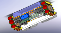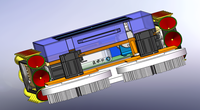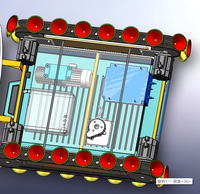 计机器人移动吸附系统是清洗幕墙清洗机器人的核心部分,由移动系统和吸附系统组成,在机器人工作过程中携带机器人的清洗系统,吸附在建筑物壁面上,实现对建筑物壁面清洗的功能。机器人主体部分由可以相互平移的两个带有若干个小吸盘的履带框架构成,其中任意一个履带可以相对另一个进行平移,每个框架成组配备可独立控制的履带轮。随着履带轮上的小吸盘交替吸附和框架主体的相对运动,机器人实现壁面自由移动的功能。框架式结构主要依赖于本体自由度与履带自由度的结构,各部分结构简单,满足灵活性和机动性的要求。