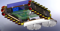 随着城市现代化的发展和人口的日益增加,为了节省土地资源,各种各样的摩天大楼成为现代都市中道亮丽的风景。在建筑业中,高层建筑的外观越来越多地采用玻璃幕墙结构,进而衍生出繁重的幕墙清洗任务,针对幕墙表面作业的特殊情况,在国内外自主移动机器人研究的基础上,设计出一种真空吸附,电力驱动、自主移动的幕墙清洗机器人。考虑幕墙清洗机器人代替人工进行有效率的清洗工作,因此本项目采用机械力清洗作用方式,即冲洗、刷洗,刮洗联合作用方式。高压水冲洗玻璃幕墙面,便于除去壁面上附着力较小的污垢并浸润壁面;电机通过同步传动齿形带带动滚刷旋转,通过滚刷刷洗,便于除去附着力较大的污垢。刮板可以刮净和回收残留在壁面的液滴,从而达到幕墙清洗的目的,整个清洗作业系统包括滚刷系统、喷水系统、和洁面系统,操作简单省时省力。