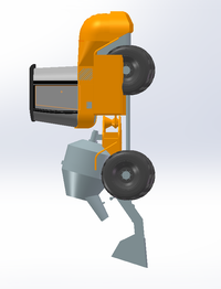 本设计的上料搅拌一体机是基于装载机平台开发的上料搅拌多功能一体机。在建筑工程中,中小型工程的混泥土配置流程通常为,砂子、水泥等物流通过工程车运送至工地后。由装载机(铲车)将砂石水泥铲至搅拌机,搅拌机输出混泥土。如果工作量不大,设备的搬运安装费时费力,因此一台铲车与搅拌一体的机器能从个方面提高效率。
