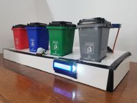 本作品全名为交互式智能分类垃圾桶,结构由四个垃圾桶组成,分别对应有害垃圾、可回收物、厨余垃圾、其他垃圾四大种类。此产品基于Arduino控制板开发,搭配LD3320语音识别模块、SYN6288语音合成模块、HC-SR501人体红外感应模块、HC-SR04超声波模块、LCD1602液晶显示屏、SG90伺服电机等模块。能够实现语音交互功能,居民在携带垃圾进行投递时,只需要说出“小慧”,唤醒垃圾桶,说出垃圾的名称,该产品便会进行语音识别将信号上传至控制板,控制板分辨垃圾属于何种种类,垃圾桶上的语音合成模块语音提示属于何种垃圾,相对应种类的垃圾桶上的伺服电机带动桶盖打开,居民投递垃圾后,人体红外感应模块检测手是否伸回,确保手伸回后,伺服电机带动桶盖关闭,极大地提高了垃圾分类的效率。垃圾桶上超声波模块测量桶内垃圾高度,将剩余高度显示在液晶屏上。为居民提示垃圾桶剩余容量,当垃圾桶容量满时,垃圾桶将信息发送到物业,物业人员收到信息后前去更换容量满的垃圾桶,体现了人性化设计。