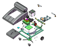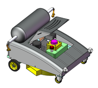 喷洒装置内部全部储存液体。利用大气压的作用将储液相中的液体喷洒出来。这个方案产生的问题是:首先是动力上的问题,由于是太阳能作为机车的唯一来源,虽然符合节能环保的观念,但是能源受天气的影响很大,天阴或者下雨除草车的动力来源就得不到保障,而且除草机的功率一般都很大,使得能源消耗的非常快;其次是车前轮的万向轮,由于使用的是万向轮,所以车轮非常的小,而且活动轮与固定脚架之间的缝隙很小,这导致除草车在运行的过程中会卡草,非常的麻烦;再者是喷洒装置,该喷洒装置不能提供强大的水压,使得喷洒的范围很小,而且到后面水会喷洒不出来。