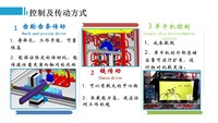 本作品由立体回转模块、机械手模块、车架锁紧模块、控制模块、人机交互模块等组成。机械手模块的作用是实现对车辆的自动存取,是整个结构里最重要的部分。立体回转模块是最难实现的一部分,我所选用的传动方式是回转式链条传动,这种方式可以在最大程度上利用空间。车架锁紧模块是在机械手存取车辆时保证车架稳定、可靠,杜绝危险事情的发生。控制模块是整个车库的灵魂,通过各种传感器的配合,实现对车库各个部分的整体控制。人机交互模块是用户与车库交流的枢纽,通过电子屏的相应提示帮助用户去完成对车辆的存取。