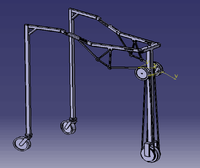 为了解决这一问题我们小组通过研究老年人的行动方式,设计出了一款将下压的力通过连杆机构转换为前行的力的装置,来帮助老年人轻松实现前行的动作。在设计的过程中我们遇到了轮盘旋转的死点问题,通过不断地试验,我们发现弹簧拨片能够解决死点问题,最终设计出了将四杆机构和曲柄滑块机构(RRR-RRP)结合的装置。同时我们还发现在助行器运动过程中,存在或多或少的问题,于是我们在原有的结构上增加了许多辅助功能,为了解决安全问题,增加了刹车功能;为了解决转向问题;增加了万向轮;为了符合不同老人的身高;我们增加了可调高度的装置。