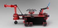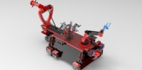 行走系统包括主体、主履带移动机构及车轮结构三个模块。主体模块位于机器人正中,和两边的主履带移动机构模块相连,形成一个整体,用于安装各种传感器、机械臂及电源。主履带移动机构模块用于实现机器人的前进及转向。机器人行走系统的三大模块对称分布,主体模块位于正中,主履带移动机构模块上下对称,机构模块上下、左右全对称。这样,机器人的重心在形心附近,有利于机器人平稳越障。