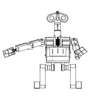 此款新世纪智能景区环卫机器人,其设计目的主要是使机器人工作于多游客的野外场所,对易拉罐与塑料袋进行收集,处理。手臂结构模拟人手臂,分为两个关节,腿部结构采用双驱动履带,双驱动履带可以自由调整各种角度,具有较强的越障能力,脖子部位采用五连杆机构,使其能够向左右两方向各进行 0-180 °的旋转和前后进行移动观察,新世纪景区智能环卫机器人在不工作时,头部结构与腿部结构可以收缩到身体内部,形成四方体躯体,减少其耗电量,增强续航能力。