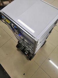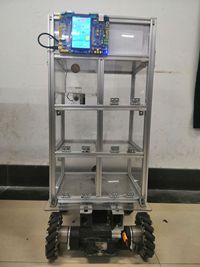 箱体机械结构由六个单独的药室、顶部的电控箱和显示屏以及磁吸盘式半自动门组成,箱体主体框架采用铝材和亚克力板制作,箱体顶部安装有拉伸门,便于用于线路的安装与调整,顶部显示屏通过显示屏底座铰接与箱体顶部,用于设置和观察箱体内部的各种参数,箱体的每个药室门上安装有磁铁片,拐角处都装有磁吸盘,正常情况下处于通电状态,药室吸盘与铁片牢牢吸住,断电时吸盘吸力消失,药室门由于自动打开,用完之后手动关上。另外箱体外部最后会装上醒目标识,还可与麦克纳姆轮车结合使用,提高药箱的实用性能。