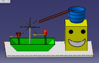 3、管道内部装有毛线和舵机和光敏电阻用于实现浇水速度的控制。当有水流下时右边的风车就会转动起来,把水均匀分布到花盆的各个位置,避免了水只往一处流,别的地方浇不到的尴尬,同时美观又有趣,使浇水进行全方位清、无死角浇灌。