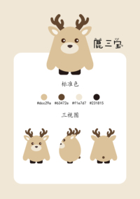 4.根据巨鹿县特色设计了一款吉祥物“鹿三宝”,整体形象提取了“鹿”这个动物的主要特点进行抽象化处理,使得吉祥物易于识别,短短小小的腿,支撑它大大的身体,体现了它的活力;
