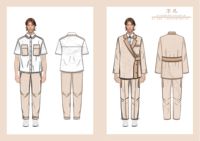 设计说明:《不凡》以大学生进入职场,穿着职业套装为题而设计,每一个人都是不平凡的,希望每一个人都能在社会中发挥自己的作用,做到不凡。设计以休闲为主,女性的职场休闲套装能够展现女性的美,所以使用了收腰的西装来凸显女性的美。而男性则使用了宽松的版型来凸显男性的力量美,希望每一个人都能像我设计的服装一样不凡,在职场中发挥自己。