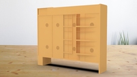 该鞋柜主要由三个部分组成,鞋子烘干部分,长雨伞烘干部分,折叠雨伞烘干部分。左侧由侧板,鞋架,臭氧消杀器,风扇,柜门,顶板组成,右侧由长雨伞烘干部分,折叠雨伞烘干部分,蓄水抽屉,储物抽屉组成。首先将鞋柜连接电源,电源灯亮起,将弄湿的鞋子和雨伞衣柜中,根据鞋子和雨伞的含水量,传感器会自动判断鞋子和雨伞烘干所需要的时间,风扇启动,进行烘干过程,下方的抽屉式水槽可以将鞋子和雨伞上多余的水收集起来。当烘干结束,臭氧消杀器开启,进行杀菌的操作。使得鞋子得到杀菌的目的。以达到在雨季也可以拥有在太阳下晒鞋子的效果。当雨伞和鞋子烘干完成后,机器会自动切断电源。
