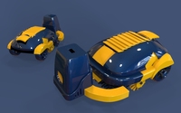此擦干机灵感来源于甲壳虫,是一个仿生设计,外形与甲壳虫类似。对原有大型擦干机笨重的外形进行了缩小,使其更加小巧方便,这样更加方便劳动,在行走过程中更加稳定安全。我们对原有的擦干机进行了调研,了解原来擦干机的优缺点,并对其进行了改进。首要的是做好擦干机最基础的功能。其次是在完整具备擦干功能之后,配合场地做出产品。如:用于体育馆的擦干机,就可以结合不同场馆的特点做出可更换的刷毛,因地制宜。并在此基础上结合人因因素、环境因素加以创新,做出真正的高效、服务于人、 方便于人的智能化产品。此擦干机主要由能源系统,传动系统,识别障碍系统和转动轮盘清洁系统四个部分组成。此系统带有四个液压传动装置,在保证能源不浪费的前提下持续高效运行。