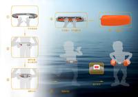 供多尺寸类型的人使用:要对特殊提醒人群增加考虑,尤其是小朋友。腰带直径200-300mm。设计主要针对游船或其他海上娱乐活动,造型美观,佩戴方便。外型美观、不累赘。安全性能好,操作简单,只需要一键便可启动。内置特殊混合材料,开关启动发生反应,10秒钟之内气囊便可完整弹出。减少溺水者危险系数,为救援争取时间。