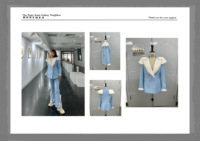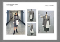本系列的主题色为浅蓝色、白色和灰色。灰色为代表宇宙星系的主色调,蓝色为地球的主色调,四套服装色彩和谐、有层次感,蓝色为点睛之笔。我们在此基础上对常规西装的造型做出了改变。其中设计亮点为“假两件“拼接效果,领型夸张设计,肩部立体造型设计,混搭拼接设计,光泽感青果领设计等,具有新意与个性且贴合主题。