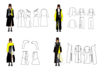 本次设计灵感来源于拼贴设计,在时代和社会的发展下,拼接设计在服装设计中由最开始的延长服装使用寿命逐渐转变成艺术内涵,将给人们带来最新的视觉体验和享受,创作阶段所使用技巧的特征在于从整体上审视它是全新的,将这些原有的不同部分尽量巧妙地整合在一个使其