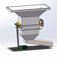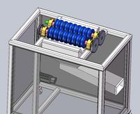 本产品属于核桃工业化生产必备的脱壳设备,是实现核仁分离的高效脱壳装置。产品主体采用硬质合金钢空心圆管,外形尺寸约为1000×1000×1000mm的立方块,内部结构均以合理的装配关系安装在这个立方块中。主要由三大装置组成,即:导向装置、脱壳装置、传动装置。导向装置确保核桃以合理的方位进入脱壳装置,并实现核桃脱壳后自动离开脱壳装置;脱壳装置有挤压轮提供使核仁分离的压力;传动装置采用带传动加上齿轮传动,给挤压轮提供动力。