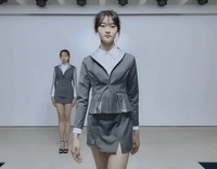 新新青年犹如争先恐后破土而出的春笋,他们掀翻石块,克服了重重困难,一个一个地从地里冒出来。从头到脚被硬硬的笋衣紧紧地包裹着,在和煦的春风吹拂和细细的春雨浇灌下,他们一层一层地脱下身上的衣裳,长成竹子,开枝散叶。《春笋怒发》寓意着新新青年茁壮成长和锦绣前程。本作品以层层包裹着的笋叶为设计点,进行延伸设计。本系列以三种灰色西服面料相结合,缝制笋叶肌理,增加服装的层次感。希望通过服装传递给新新青年更多的力量。