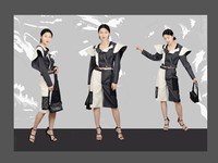 这个系列服装是女性的内柔外刚以作为灵感。三套服饰主色调为灰白,拼接的灰白相间配以少许蕾丝加以点缀。凸显出女性大气,端庄的性格特点。面料上从毛呢材质到薄如羽翼的蕾丝,不同的材质的结合也呈现出不一样的美感,达到了刚柔并济的效果,流动的线感与飞舞的衣肩形成美感。