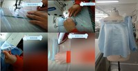 款式一:大方领加拼接网纱加两层荷叶边,袖子是泡泡袖加上灯笼袖,加上袖克夫加上搭褶湖蓝袖口。裙子是金丝绒开叉包臀裙。适用场合为商务晚宴,包臀裙也可在正式商务场合穿着。