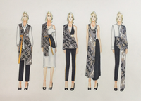 通过黑白色与英文元素的结合,寻找中西方的碰撞来表达文化创意。使得女性的干练气质更加突出。颜色元素和谐统一,使其系列感更强。