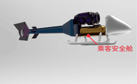 我们设计的直升机安全逃生舱运用广泛,可以涉及多个直升机领域。例如:商用载人直升机,我们将载人区域设计成了安全舱,安全舱拼接在直升机机身里面。如果直升机在空中出现发动机失灵、偶遇恶劣天气无法飞行的时候,直升机驾驶员或者乘客可以立即将安全舱与机身分离,安全舱在下落途中迅速打开降落伞,使直升机安全舱安全着陆。乘客在安全舱着陆过后即可获救,驾驶员有自身安全座椅,如遇飞机故障驾驶员也可自保,这样直升机即使飞机摧毁,乘客的安全可以得到有效保障。安全舱设计巧妙,较传统的救援直升机相比,我们这款救援直升机救援更为巧妙。安全舱和机身采用组装弹射。自救能力更为突出,救援方式更加新颖,机身机构更加巧妙。