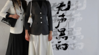 “成熟”“知性”“优雅”通常是职场女性的代言词,而“”无声黑白系列服装正是展示这一职场女性特有的魅力,但除了继承了传统职场套装的特点,该系列又加入了现代女性爱穿的A字版型的百褶裙与收腰的上衣西装,更能修饰女性的身形,长西装长裙和段衬衫西裤搭配黑色马丁靴穿搭,又展现出职场女性活泼飒爽又可爱的一面。因整体配色简单无复杂之处,在职场女性的身上也体现出落落大方之感。红唇在黑白装的映衬下显得尤为突出,又给大家展现出职场女性的强大气场与魅力。