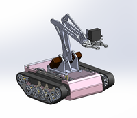 4. 取消了机械臂旋转轴,由于采用了履带驱动,小车可以很好的完成原地转向的任务,故取消了旋转轴,在对小车进行编程控制时可以更加简单高效。
