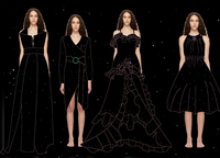 在初冬的夜晚,也有靓丽的风景线,黑色本就是高贵的代表,裙上的星星点点更好的衬托了服装,犹如星空一般。在黑夜里也有点点星光,适用于正式商务场合和晚宴。