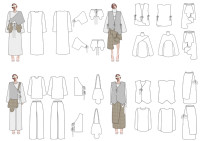 该作品是休闲服装系列,整体呈直筒型版型,运用棉麻和皮毛一体面料简单结合打造一种简易的日式侘寂风服装,体现了素洁和极致的简约效果,营造一种安静的质朴之美。该服装多运用了不对称不规则的设计体现服装部分的不完美,却能从中体现整体自然的完整性。