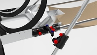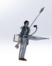 本设计由识别装置、伸缩装置、剪切旋转装置、收集装置四部分组成,实现了柑橘自动采摘和收集等功能。识别装置由手机支架、控制器、摄像头三部分组成,通过顶端摄像头对柑橘的位置进行识别定位,并将影像传至位于支架上的手机屏幕中,借此来确定柑橘的位置。伸缩装置由伸缩杆,电动气泵这两部分组成,通过目测柑橘所在位置的高度,由控制器调节电动气泵,控制伸缩杆移动,达到合适的剪切高度。剪切旋转装置由刀头、旋转电机、剪切电机三部分组成。当剪切装置到达适合的剪切位置,通过控制电机,使刀头旋转到适合的剪切角度,然后控制剪切电机带动刀头工作,实现果梗的剪切。收集装置由收集箱和收集筐组成,当柑橘被成功剪下后,在重力的作用下直接坠入收集筐中,收集筐装满之后,通过收集箱上的漏斗倒入收集箱,收集箱中装有缓冲机构,可以有效减少柑橘下落产生的冲击,保证果实不会损伤。机器人采用了外骨骼背带设计,可直接安装在人身上,大大降低劳动强度,适合长时间采摘。