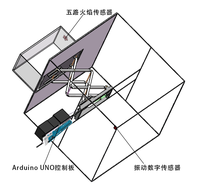 对内,自动回收储存展览台基于Arduino控制系统,通过展览柜后的五路火焰传感器和装置底部的振动传感器将火焰和振动信息传递给Arduino后,步进电机工作推动液压活塞,使剪刀式升降台向下运动,从而实现重要物品的回收。经过测试,此过程约8~10s。
