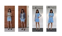 本系列设计由蓝白黄条纹面料作装点,清新淡雅的蓝色面料为主色系搭配,蓝色和灰色的西装外套,在袖口以及袖山上作出不同于经典西装上的改造,西装外套进行类似于西方礼服裙中的收腰廓形的设计,使整体更有设计点。款式上运用经典衬衫样式进行创新改造,使整体更具设计感,突出女性的柔美、性感的一面,同时也突出了曲线美,利用衬衫袖子造型以及绑带设计,令衣服穿在人体上更为修身,穿上去给人一种时尚感十足。