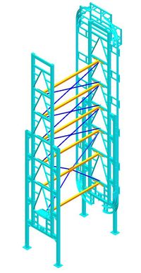本次设计的立体车库采用的电机驱动链轮实现对车体的垂直循环停储,主要由钢结构主框架部分、钢结构副框架部分、传动机构、停车台、链条导轨、控制系统及安全防护装置等组成。主体结构为钢框架梁结构,采用PLC控制电机的精确运动,实现车辆的方便存储。