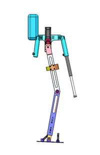 助走防跌倒动力外骨骼是为了针对独居老年人居家生活和近距离户外独立行走而设计的一款可穿戴的动力外骨骼,它具有辅助行走和防摔倒两个功能。可以通过模块增加智能操作和控制功能,本作品分为两套系统,防跌倒系统和助走系统,对独居老年人的生活起到一定的辅助作用。防跌倒系统利用滚珠角度开关以及加装平衡感应器的STM32单片机并联检测老人的失衡状态,并将接收到的信号转化输出给用来支撑失衡老人的机械结构—弹簧杆,四根弹簧杆及时弹出,实现支撑失衡老人的功能;助走系统,利用闭环程序,用电机连接减速器带动符合人体工程力学的腿部机械机构运动,实现辅助老人行走的功能。本作品最大的创新点在于赋予弹簧杆这一简单稳定的机械结构以全新的应用场景—在外骨骼上实现支撑功能。