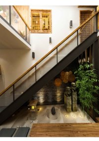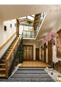 禅宗所提倡的思想是—种简单、淡然、朴实的境界,这也是禅意空间需要体现出的一种设计理念。所谓简单,与“少即是多”的理念相符合,越是简单越能极大的利用起空间,用少量的设施来体现广阔的空间,从而引发人们无限的遐想。在西方设计领域,有一种与禅文化的理念相似的设计风格,即极简主义设计风格。主要以摒弃繁杂的物质,使整体感观简约干净为主,为人们的身心提供宽阔的空间,由此可见这种风格已经成为了设计风尚。但在思想上,禅宗所提倡的简约远远高于极简主义设计风格,因为禅宗的"简"注重的是内心的一种精华,而非表面上的减少,是要利用简单的元素表达出无限的禅意。简单的说,禅意空间里的这种简单质朴的境界,既清新脱俗,又使人思索,触发人的心灵,又使人向往。它将人们与自然相连接,可以暂时忘却都市里的繁华,由此获得精神上的超脱,使心灵保持宁静,这也就是为什么现代人会对于禅意空间产生心灵的追求。